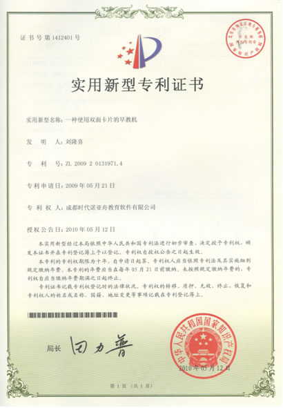 市场经济下,任何新兴事物的出现,都会引起“跟风”,产品同质化现象层出不穷,诺亚舟公司站在时代的高度上,遵照“技术是第一生产力”的方向,大力进行技术创新,如异军突起给行业带来了新的活力。今年5月份,诺亚舟的一款使用双面卡片的早教机获得专利授权。这款早教机包括:主机面板、控制电路、输出装置和卡片。主机面板设有卡片槽,卡片槽两侧分别设有可识别卡片正反面地址的正反面插入口,双面卡一端作为插入端,当卡片正面使用时,卡片插入端插入到卡片槽一侧的正面插入口,反之为负面。这样一张双面卡相当于两张单面卡,减少了卡片数量,从而降低了早教机的成本且方便用户使用。由于在现有的技术中早教机并不符合学前儿童的使用习惯,所以诺亚舟本次推出的这项技术对行业以及消费者都具有深远的意义。