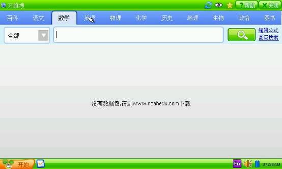 Loading……“没有数据包,请到www.noahedu.com下载”。呵呵,看到这里,大家不要以为这是“万维搜”出现了什么缺陷,其实是“万维搜”功能可以随着孩子的学习进度,随时去诺亚舟官网上进行资料下载、更新的,因为小编刚拿到的这款产品是新机,所以没有相关资料也是正常的。