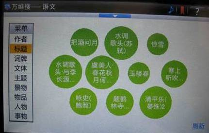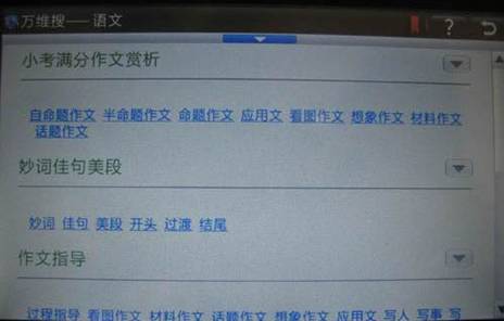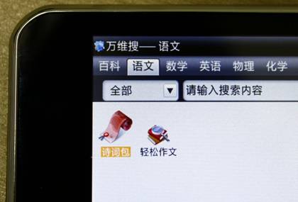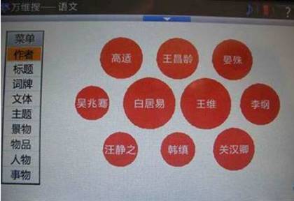 我打小对诗词比较感兴趣,倒是要看看用这个机器怎么搜索语文诗词了。我进入万维搜——语文,选择诗词包,就看到了一个长框框的菜单,可以按照作者、标题、文体等搜索想学习的项目。