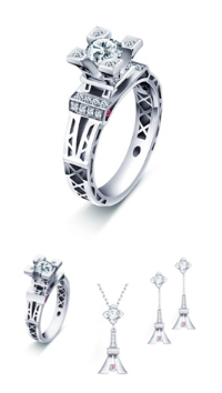 Tower设计灵感源于埃菲尔铁塔的外形和其建造者埃菲尔先生与玛格丽特小姐的爱情故事。纪念日系列中的Tower钻饰是婚戒Tower系列的升级版,它蕴含了更精美的设计也被赋予了更深刻的意义。埃菲尔铁塔是埃菲尔先生爱情誓言的化身,在爱情的世界里屹立不倒。戒指侧面即是巴黎铁塔造型的巧妙设计将永恒的誓言从巴黎带到每对爱侣的指尖,以此来纪念那些用行动兑现的诺言。