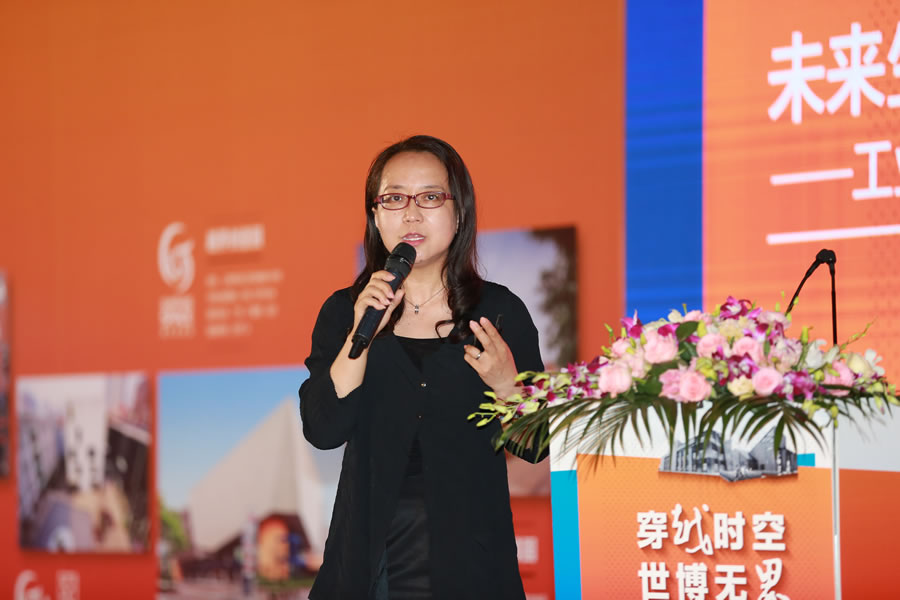 上海锦和投资集团有限公司董事长、上海锦和商业经营管理股份有限公司董事长兼总经理郁敏珺女士解读越界世博园的传承与创新。郁敏珺介绍说,上海城市改造由原来的“拆改留”转变成“留改拆”,越界世博园的定位将融合商务、旅游、娱乐等非传统的改建理念,保留原来工业遗产的框架、结构,充分展现具有现代气息和工业遗产的建筑设计。越界世博园将是世博文化遗产的承载区、城市最佳实践区,会珍惜双遗产的价值。