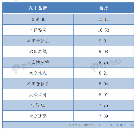 值得一提的是,在新晋微博平台公布的年度车型热度榜单中,哈H6以热度13.11的绝对优势,力压雅阁、卡罗拉、思域、迈腾和普拉多众合资品牌头牌获得头把交椅。这不仅代表着哈H6在消费者中的高关注度,更标志着中国品牌已在部分市场超越合资品牌,中国品牌与合资品牌的竞争进入了全新阶段。