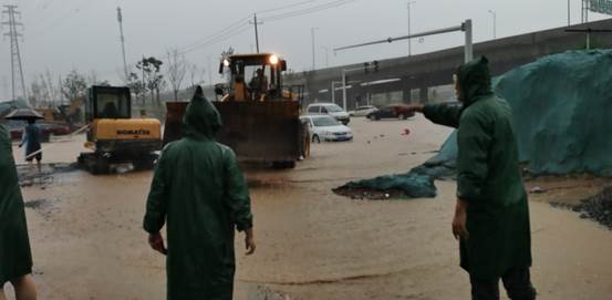 华侨城物业(集团)郑州分公司在管项目位于郑州市中原区,连续的高强度降雨造成辖区内路面设施多处漏塌方、内涝严重,人民群众生命财产安全受到威胁。