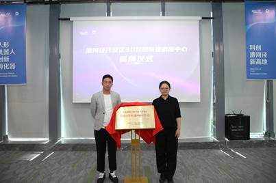 人形机器人创新孵化器副总经理盛顺与漕河管理公司总经理助理黄静共同为“漕河开发区 3D 打印快速响应中心”揭牌